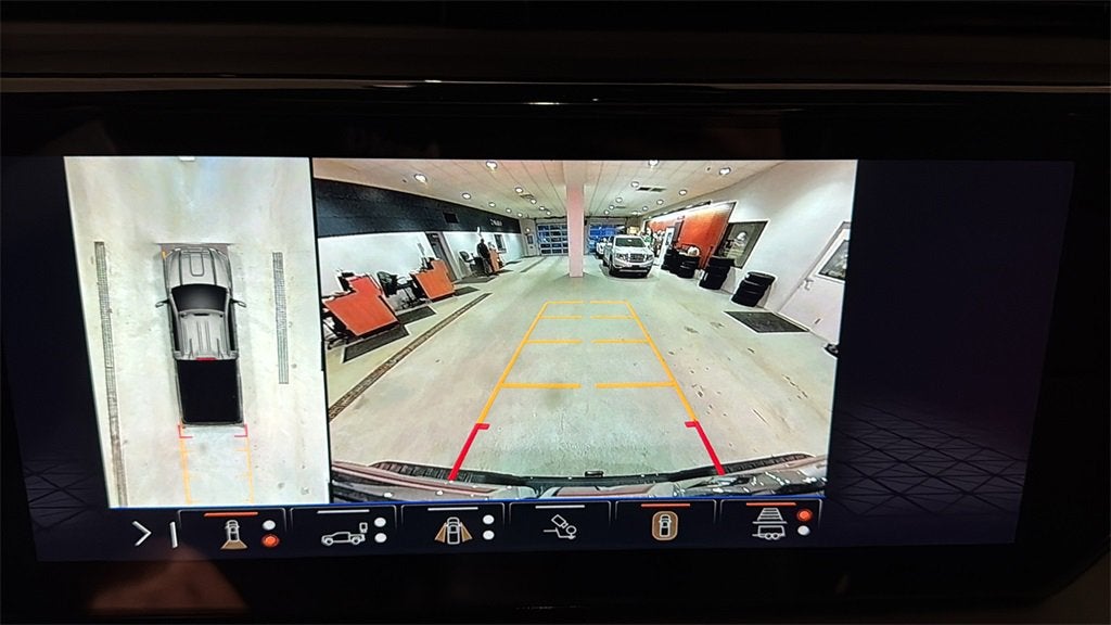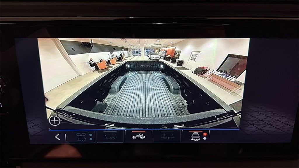 - Allows driver to see inside the cargo bed on the infotainment display to help with 5th wheel or gooseneck hitching and to check cargo