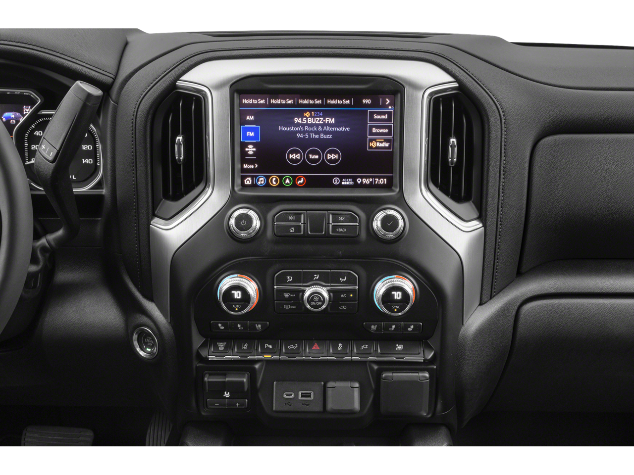 This vehicle Contains the following features and options: Preferred Equipment Group 4SA (12-Volt Rear Auxiliary Power Outlet, 120-Volt Bed Mounted Power Outlet, 120-Volt Instrument Panel Power Outlet, 2-Speed Active Transfer Case, 2nd Row Dual USB Charge-Only Ports, 4.2 Diagonal Color Display Driver Info Center, 4G LTE Wi-Fi Hotspot Capable, Chrome Surround Grille w/High Gloss Black Mesh, Compass Located In Instrument Cluster, Deep-Tinted Glass, Electric Rear-Window Defogger, Electrical Lock Control Steering Column, GMC Connected Access Capable, Integrated Trailer Brake Controller, Keyless Open & Start, LED Cargo Area Lighting, Manual Tilt-Wheel/Telescoping Steering Column, OnStar & GMC Connected Services Capable, Power Door Locks, Power Front Passenger Windows w/Express Up/Down, Power Rear Windows w/Express Down, Power Windows w/Driver Express Up/Down, Rear Wheelhouse Liners, Remote Vehicle Starter System, Steering Wheel Audio Controls, and Unauthorized Entry Theft-Deterrent System), SLT Convenience Package (10-Way Power Driver Seat Adjuster w/Lumbar, 2 USB Ports, 2 USB Ports (1st Row), Floor-Mounted Center Console, Front Bucket Seats, Heated & Ventilated Front Bucket Seats, Heated 2nd Row Outboard Seats, Heated Driver & Front Outboard Passenger Seats, Power Sliding Rear Window w/Defogger, and Universal Home Remote), Snow Plow Prep/Camper Package, Suspension Package, 10-Way Power Passenger Seat Adjuster w/Lumbar, 220 Amps Alternator, 3.73 Rear Axle Ratio, 4-Wheel Disc Brakes, 6 Speakers, 6-Speaker Audio System Feature, ABS brakes, Air Conditioning, Alloy wheels, AM/FM radio: SiriusXM, Apple CarPlay/Android Auto, Auto-dimming door mirrors, Auto-dimming Rear-View mirror, Automatic temperature control, Brake assist, Bumpers: chrome, Compass, Delay-off headlights, Driver door bin, Driver Memory, Driver vanity mirror, Dual front impact airbags, Dual front side impact airbags, Electronic Stability Control, Front 40/20/40 Split-Bench Seats w/Lockable Storage, Front anti-roll bar, Front Center Armrest w/Storage, Front dual zone A/C, Front fog lights, Front License Plate Kit, Front reading lights, Front wheel independent suspension, Fully automatic headlights, HD Radio, Heated door mirrors, Heated front seats, Heated steering wheel, Heavy-Duty 80 Amp Battery, Hitch Guidance w/Hitch View, Illuminated entry, In-Vehicle Trailering System App, LED Smoked Amber Roof Marker Lamps, Low tire pressure warning, Memory seat, Occupant sensing airbag, Outside temperature display, Overhead airbag, Overhead console, Panic alarm, Passenger door bin, Passenger vanity mirror, Perforated Leather-Appointed Front Seat Trim, Pickup Box, Power door mirrors, Power driver seat, Power passenger seat, Power steering, Power windows, Premium audio system: Premium GMC Infotainment System, Radio: AM/FM w/Premium GMC Infotainment System, Rear reading lights, Rear seat center armrest, Rear step bumper, Rear window defroster, Remote keyless entry, Security system, SiriusXM w/360L, Speed control, Speed-sensing steering, Split folding rear seat, Spray-On Pickup Box Bed Liner w/GMC Logo, Steering wheel mounted audio controls, Tachometer, Telescoping steering wheel, Tilt steering wheel, Traction control, Trip computer, Turn signal indicator mirrors, Variably intermittent wipers, Voltmeter, and Wheels: 18 6-Spoke Machined Aluminum.